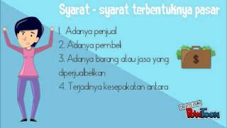 Video pembelajaran tentang Pasar dalam Perekonomian yang berisi a. pengertian pasar b. syarat pasar c. fungsi pasar d. peranan pasar bagi: produsen, konsumen, pembangunan, SDM e. pasar menurut...
